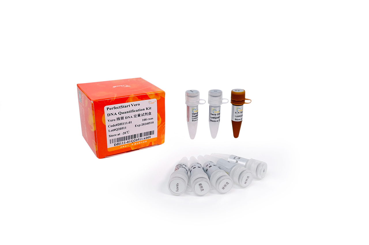 本產(chǎn)品原理為利用在PCR體系中加入熒光探針 (TaqMan或Molecular Beacon等),擴(kuò)增過程中其熒光量與擴(kuò)增產(chǎn)物量成正比,通過熒光量的檢測測定樣品核酸量。本產(chǎn)品中的Vero qPCR SuperMix (2×)含PerfectStart Taq熱啟動酶 (利用3種單克隆抗體與Taq DNA Polymerase高效結(jié)合,有效地封閉了DNA聚合酶活性,阻止了低溫下的非特異性擴(kuò)增)、針對Vero細(xì)胞DNA檢測特殊優(yōu)化的qPCR反應(yīng)緩沖液、dNTPs、PCR增強(qiáng)劑、穩(wěn)定劑。此外,本反應(yīng)液引入了dUTP/UDG系統(tǒng),可在反轉(zhuǎn)錄前降解含U的ssDNA和dsDNA,消除由PCR產(chǎn)物導(dǎo)致的交叉污染。