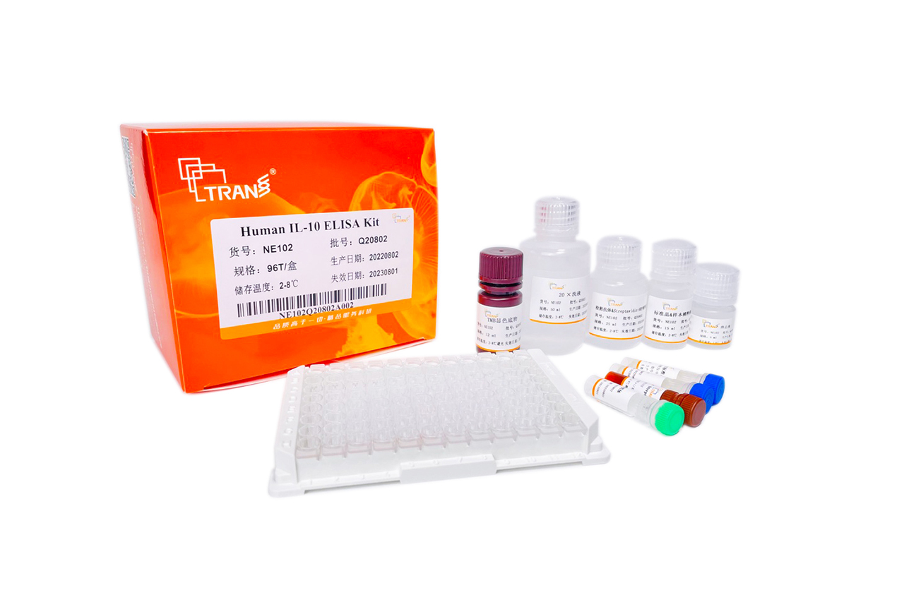本試劑盒采用雙抗體夾心ELISA法定量測(cè)定人血清、血漿和細(xì)胞培養(yǎng)上清中的IL-10含量。本試劑盒采用高親和力的抗人IL-10抗體預(yù)包被酶標(biāo)板,將標(biāo)準(zhǔn)品/待測(cè)樣本加入微板孔中,經(jīng)過孵育后樣本中存在的IL-10會(huì)與酶標(biāo)板上的預(yù)包被抗體特異性結(jié)合。洗滌去除未結(jié)合物后,將生物素標(biāo)記的抗人IL-10檢測(cè)抗體加入微板孔中,再次孵育后檢測(cè)抗體會(huì)與錨定在酶標(biāo)板上的IL-10特異性結(jié)合。隨后,將辣根過氧化物酶標(biāo)記的鏈霉親和素(Streptavidin-HRP)加至微孔板中并孵育,通過檢測(cè)抗體上的生物素和鏈霉親和素發(fā)生的高強(qiáng)度非共價(jià)結(jié)合,形成“包被抗體-人IL-10蛋白-檢測(cè)抗體-Streptavidin-HRP”免疫復(fù)合物。再次洗滌后,將顯色底物TMB加至微板孔中,HRP會(huì)催化TMB底物生成藍(lán)色產(chǎn)物,顏色反應(yīng)的深淺將與樣本中IL-10的濃度成正相關(guān)。而后加入終止液終止反應(yīng),在450 nm波長(參考波長570 - 630 nm)處測(cè)定吸光度值。通過繪制標(biāo)準(zhǔn)曲線,由樣本吸光度值可計(jì)算出樣本中所含IL-10濃度。本試劑盒特異性強(qiáng)、檢測(cè)靈敏度高,同時(shí)操作更加便捷。