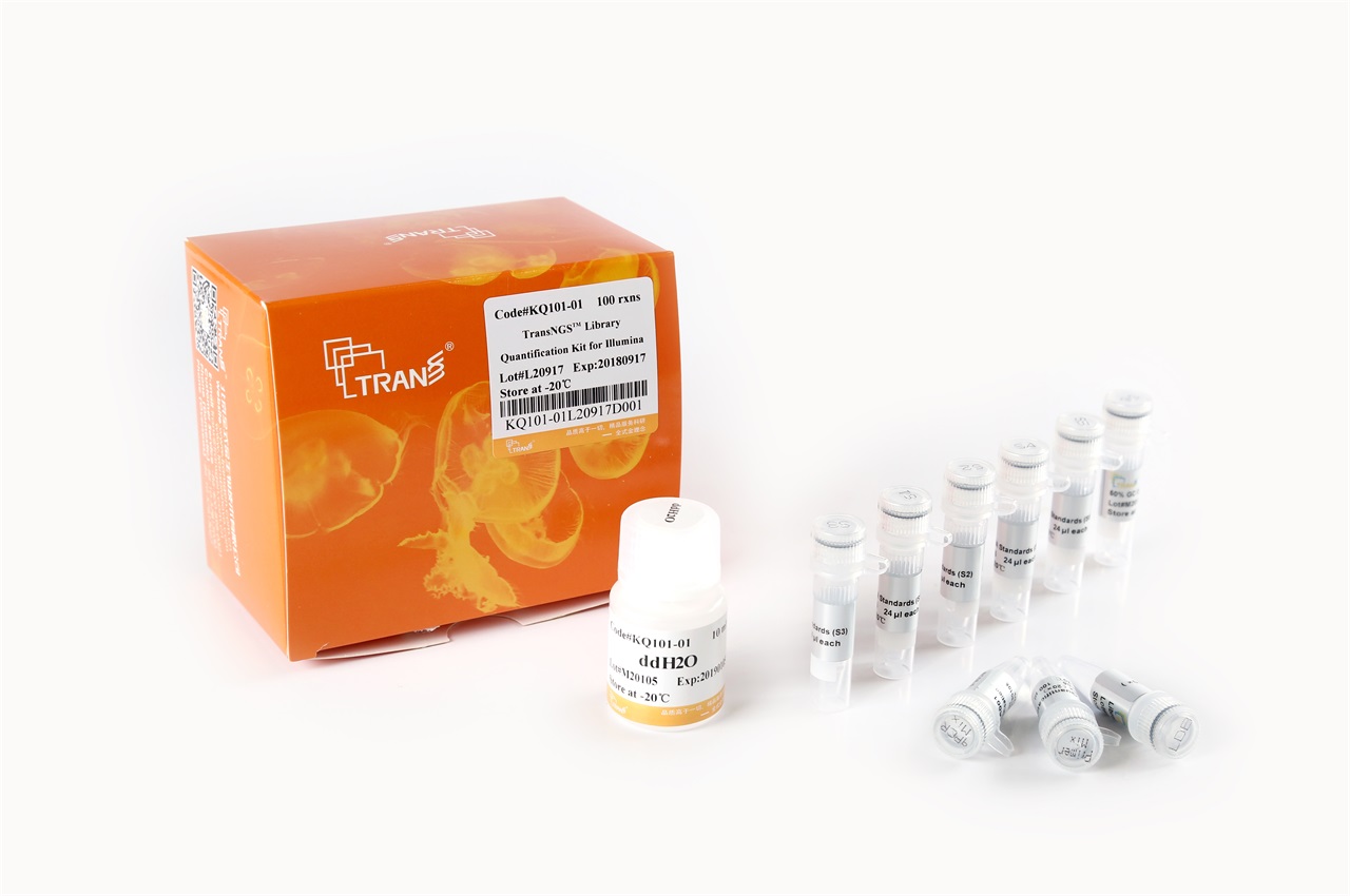 本試劑盒利用qPCR方法精確定量Illumina測序平臺不同GC含量的二代測序文庫。其中qPCR預(yù)混液采用全封閉法TransStart? TipTaq新型熱啟動(dòng)酶,并包含新型EvaGreen熒光染料、dNTPs、PCR增強(qiáng)劑、PCR穩(wěn)定劑以及針對文庫定量特別優(yōu)化的反應(yīng)緩沖液,具有靈敏度高、特異性強(qiáng)、擴(kuò)增能力強(qiáng)、適用范圍廣、穩(wěn)定性好等特點(diǎn),適用于不同GC含量以及長片段文庫的定量檢測。