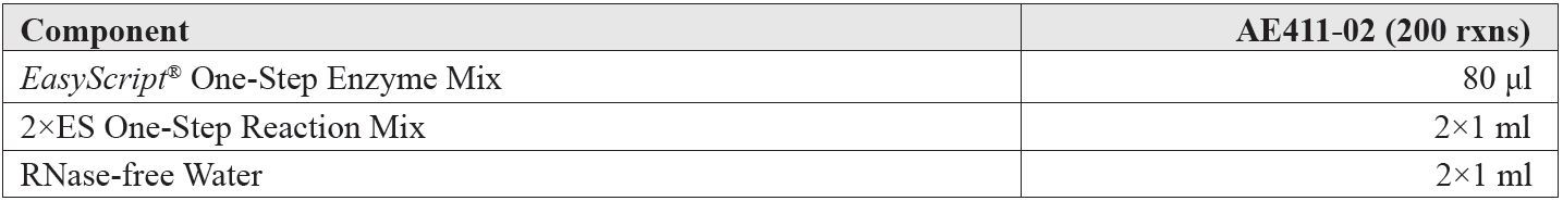 EasyScript? One-Step RT-PCR SuperMix是具有高效合成能力和高擴(kuò)增效率的一步法RT-PCR試劑盒。本試劑盒以RNA為模板,反向基因特異引物為反轉(zhuǎn)錄引物合成第一鏈cDNA;然后以合成的cDNA為模板,用正向、反向基因特異引物進(jìn)行PCR,在同一反應(yīng)體系中一步完成從反轉(zhuǎn)錄到PCR的全部反應(yīng)。擴(kuò)增產(chǎn)物可直接點樣電泳。
